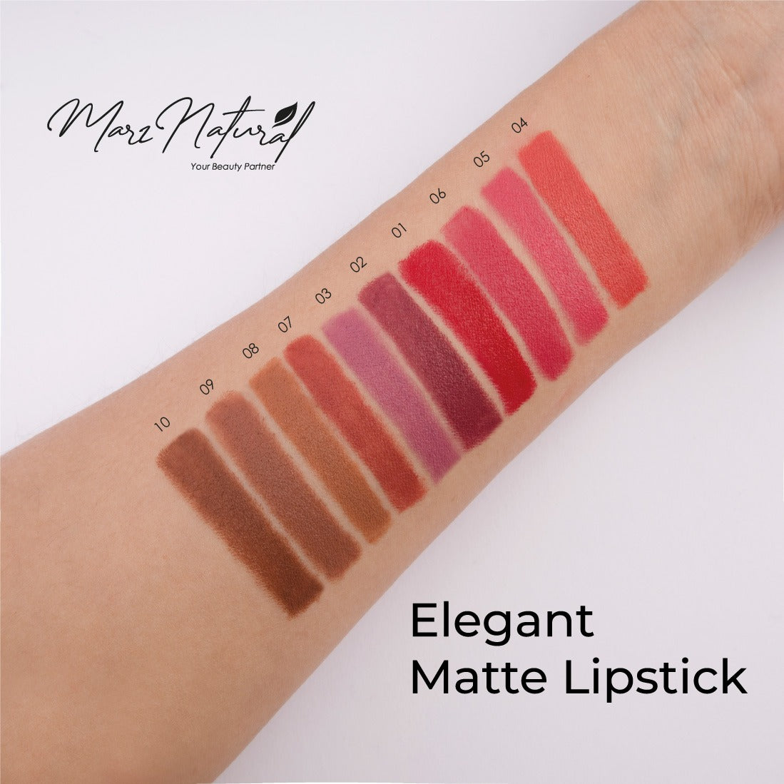 In the realm of cosmetics, behold the magic of Creamy Matte Finish – a mesmerizing elixir that transcends ordinary lip products. Its velvety touch glides effortlessly, leaving lips adorned with a flawless matte texture. Unyielding to smudges and imperfections, it grants the freedom to embrace life's splendors without worry. With a captivating array of highly pigmented colors, it becomes a painter's palette for self-expression. Waterproof and hydrating, it stands resilient against nature's whims, ensuring your allure remains unwavering. Experience the enchantment of Elegant Matte – where beauty knows no bounds, and your smile reigns supreme.